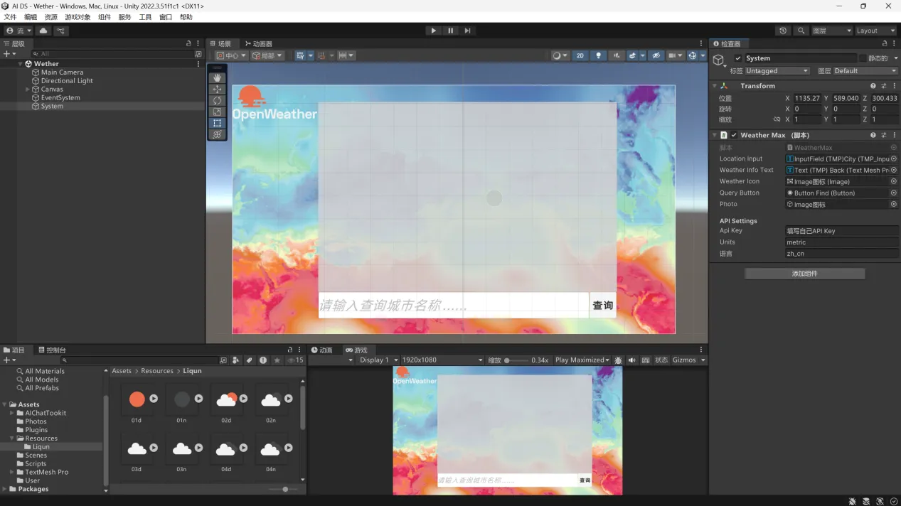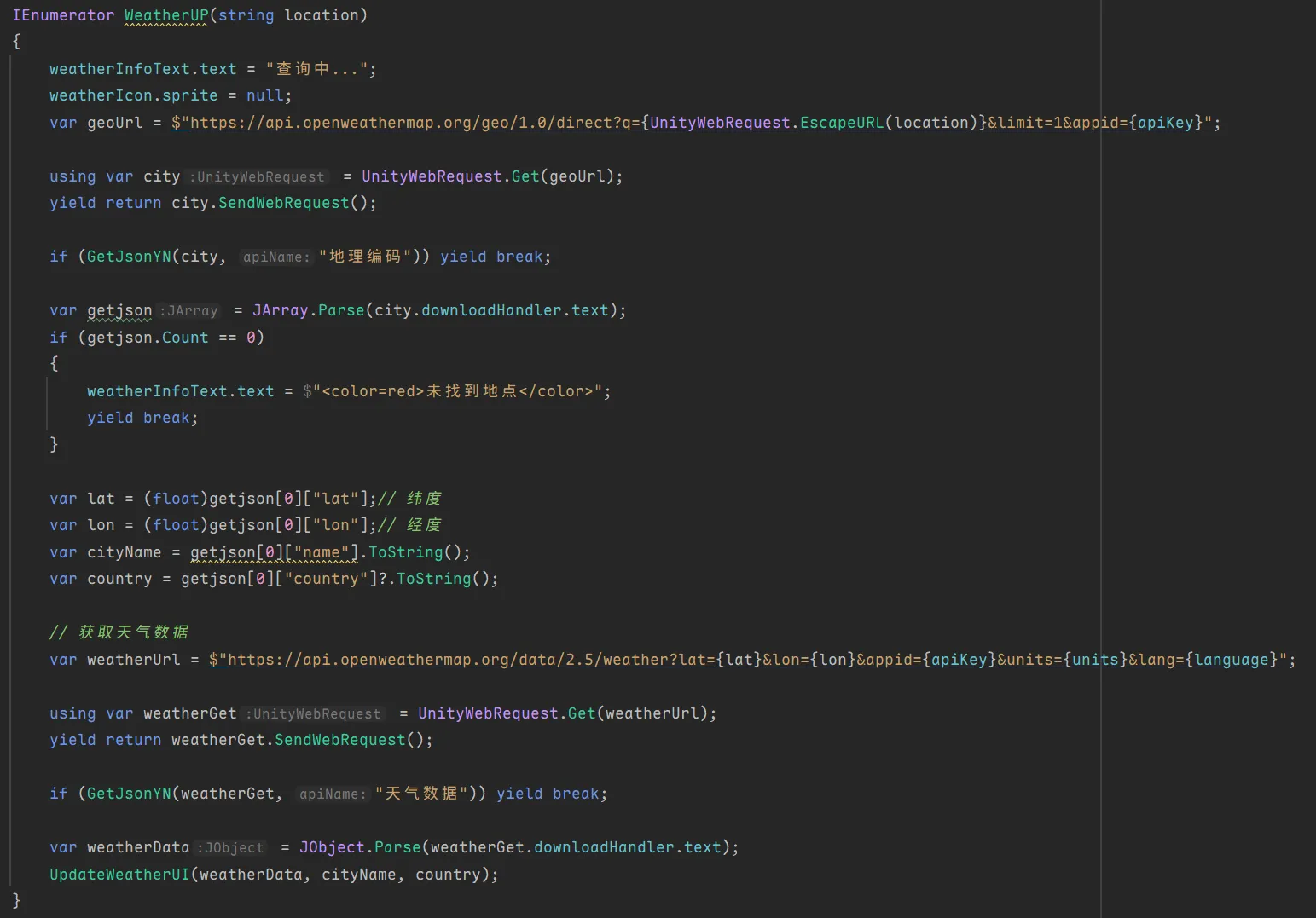 Unity调用OpenWeatherAPI查询天气